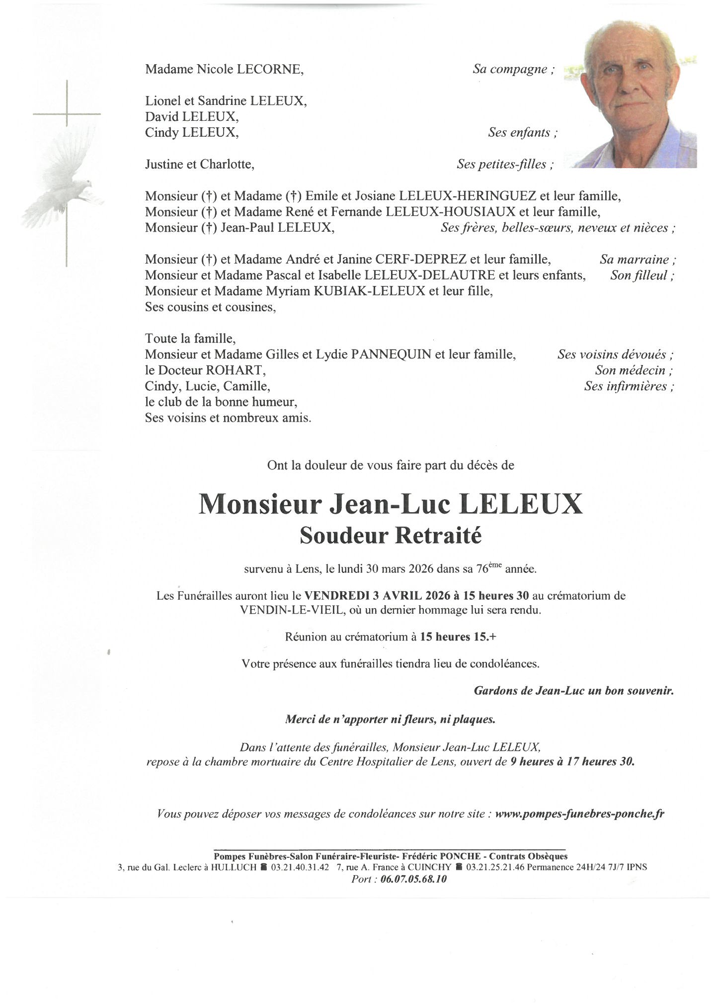 mes plus sincères condoléances à la famille